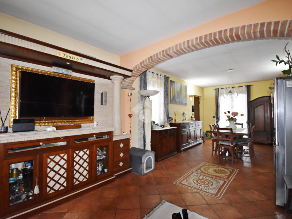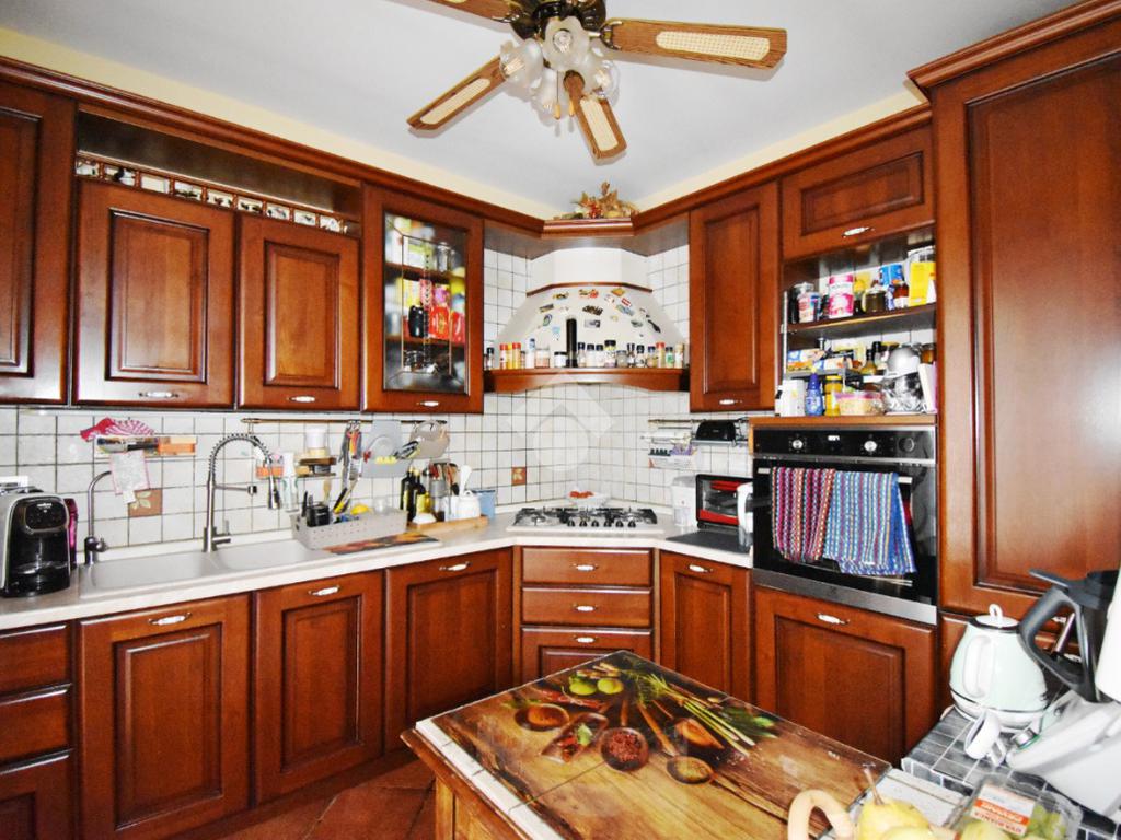 L’ingresso si apre su un ampio e luminoso salone doppio, idealmente suddiviso in zona pranzo e in zona tv, dove poter passare momenti di convivialità in famiglia. La cucina, con piano cottura angolare, è separata e funzionale.