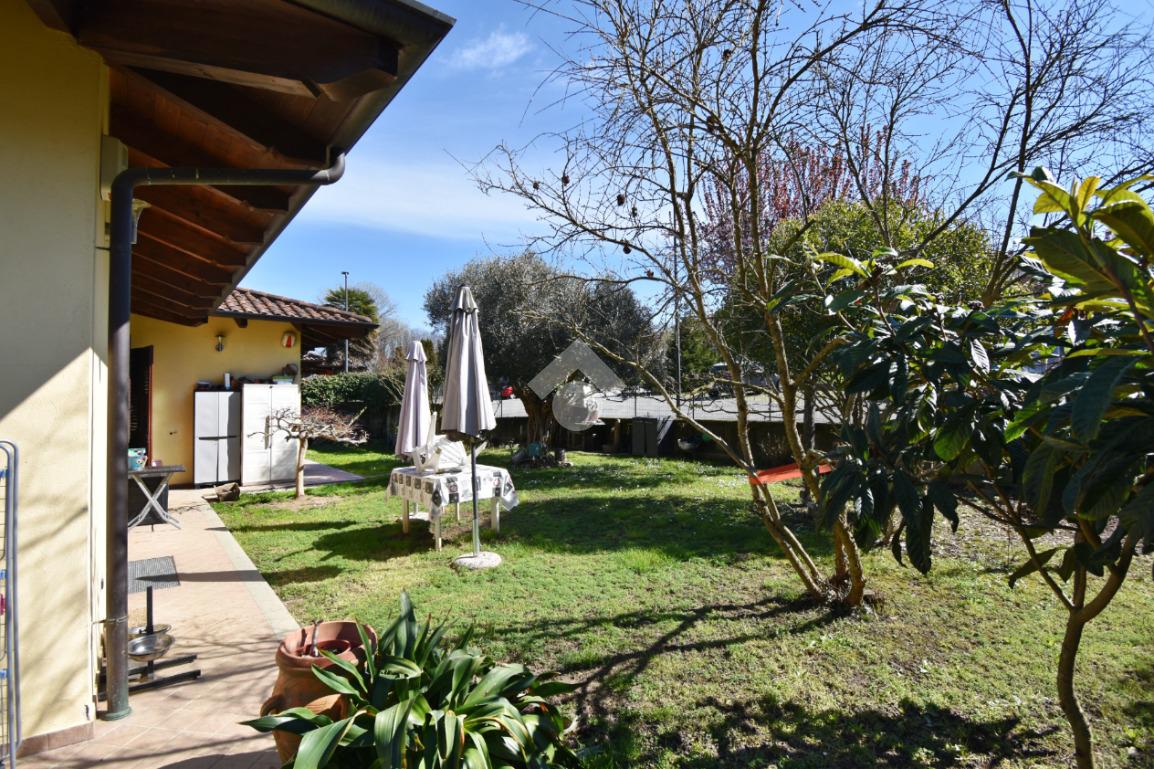 All’esterno, la proprietà è circondata da un giardino privato con portico, ideale per vivere momenti all’aria aperta e godere della tranquillità del paesaggio collinare.