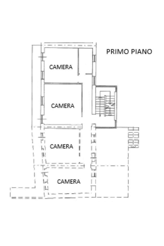 Le scale interne conducono al primo piano dove sono presenti quattro camere da letto, tutte unite dallo stesso balcone e un bagno finestrato con vasca.
