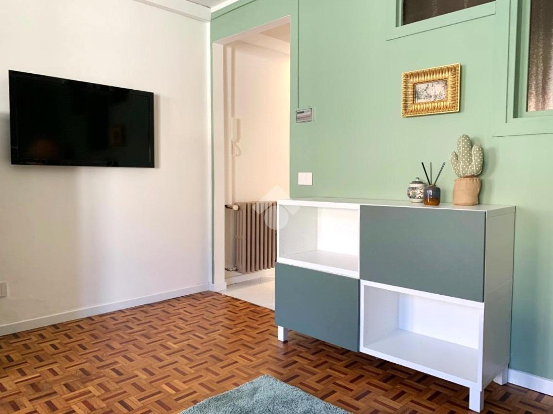 L'ingresso ci conduce al soggiorno con angolo cottura a vista e balcone con affaccio sulla via principale. Nella zona notte è presente una camera da letto matrimoniale, mentre il bagno finestrato è dotato di doccia. Ulteriore locale aggiuntivo utilizzato come lavanderia.