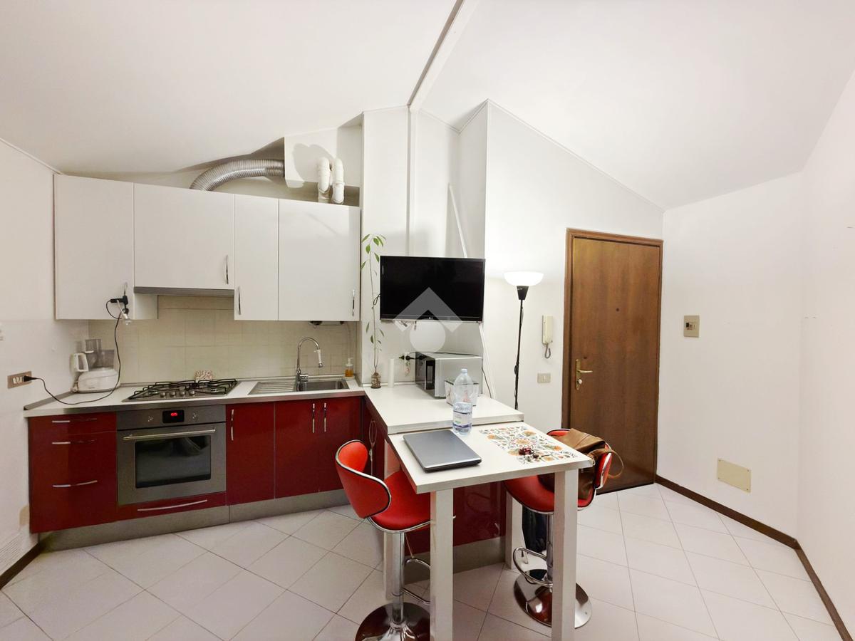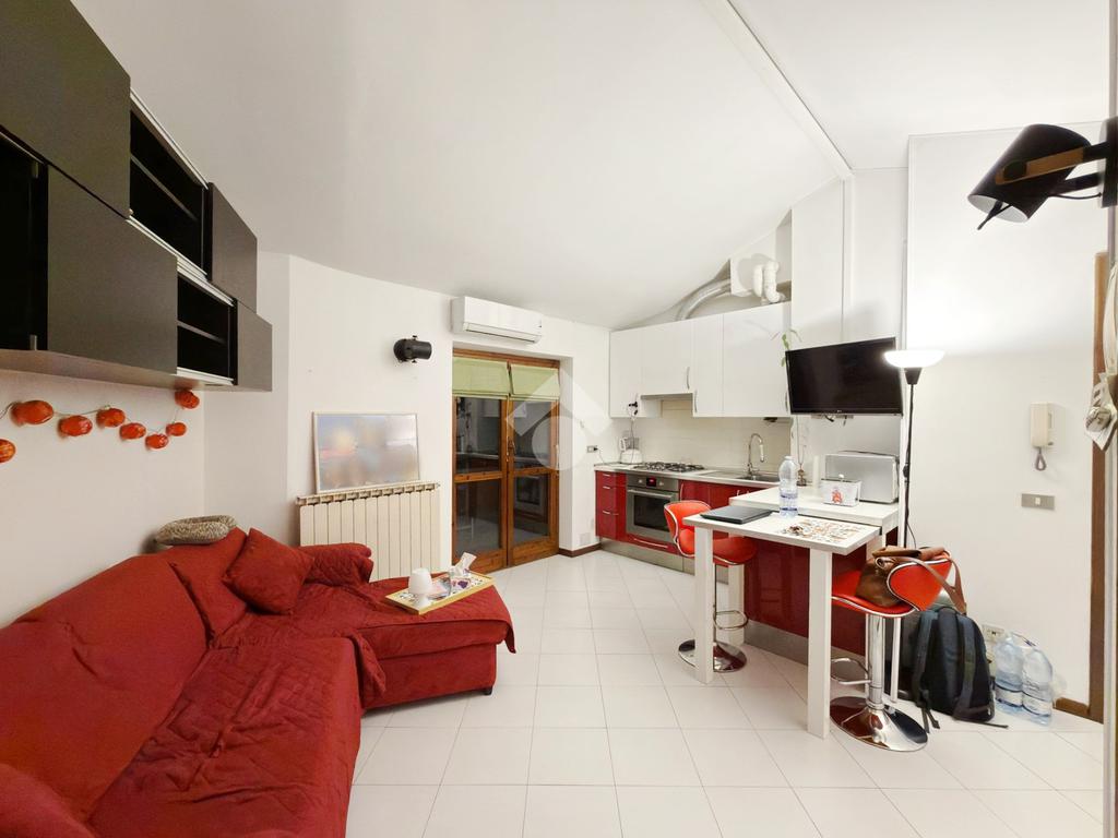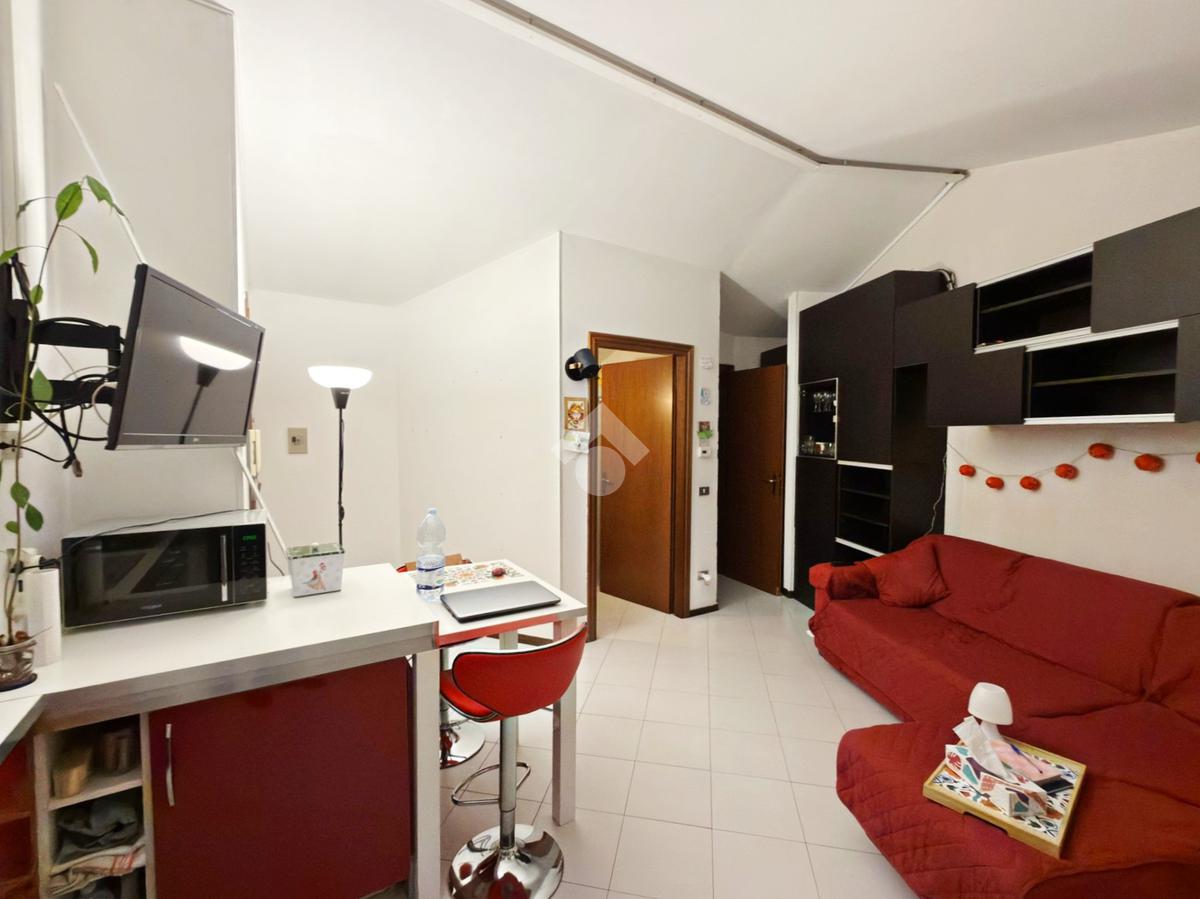 L'ingresso si apre sul soggiorno con angolo cottura a vista e balcone esterno. Nella zona notte è presente una camera da letto, mentre il bagno è finestrato dotato di doccia.