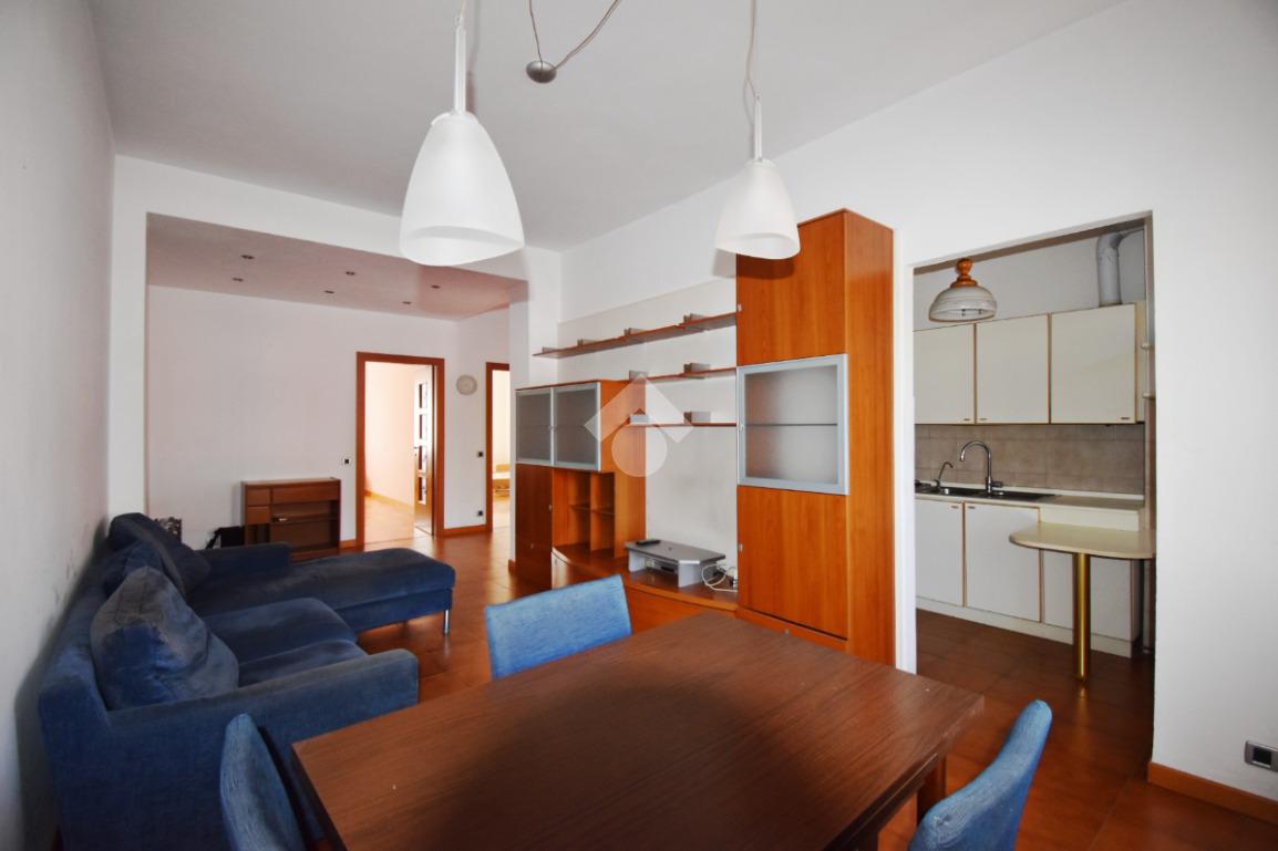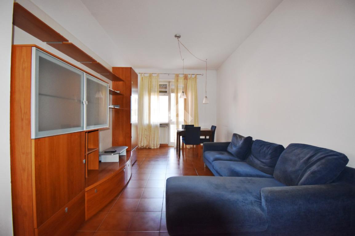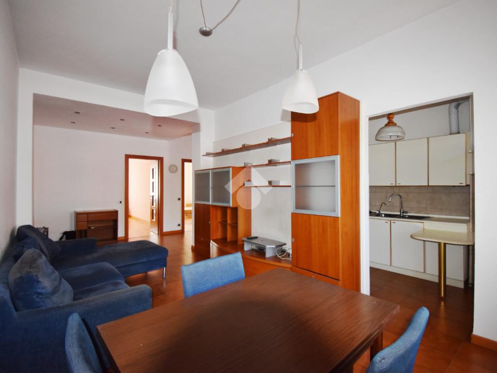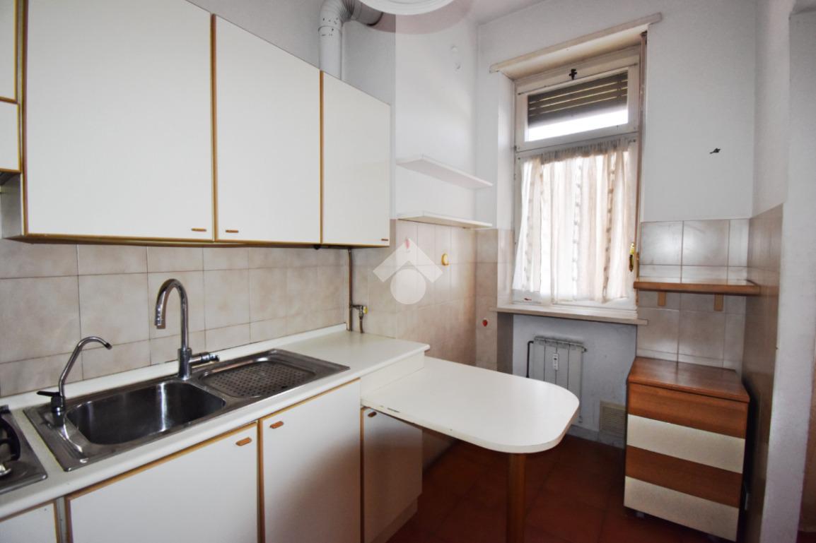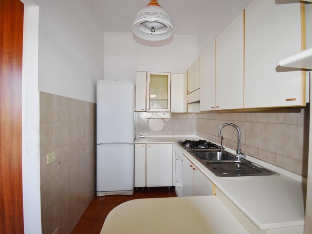 L'ingresso si apre sul soggiorno con cucinotto adiacente, dove, tramite l'abbattimento di un tramezzo si potrebbe creare un ambiente open space.