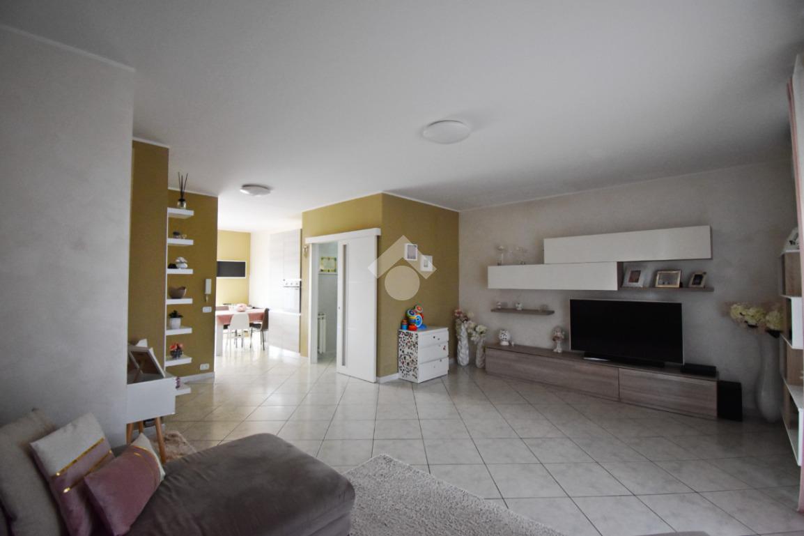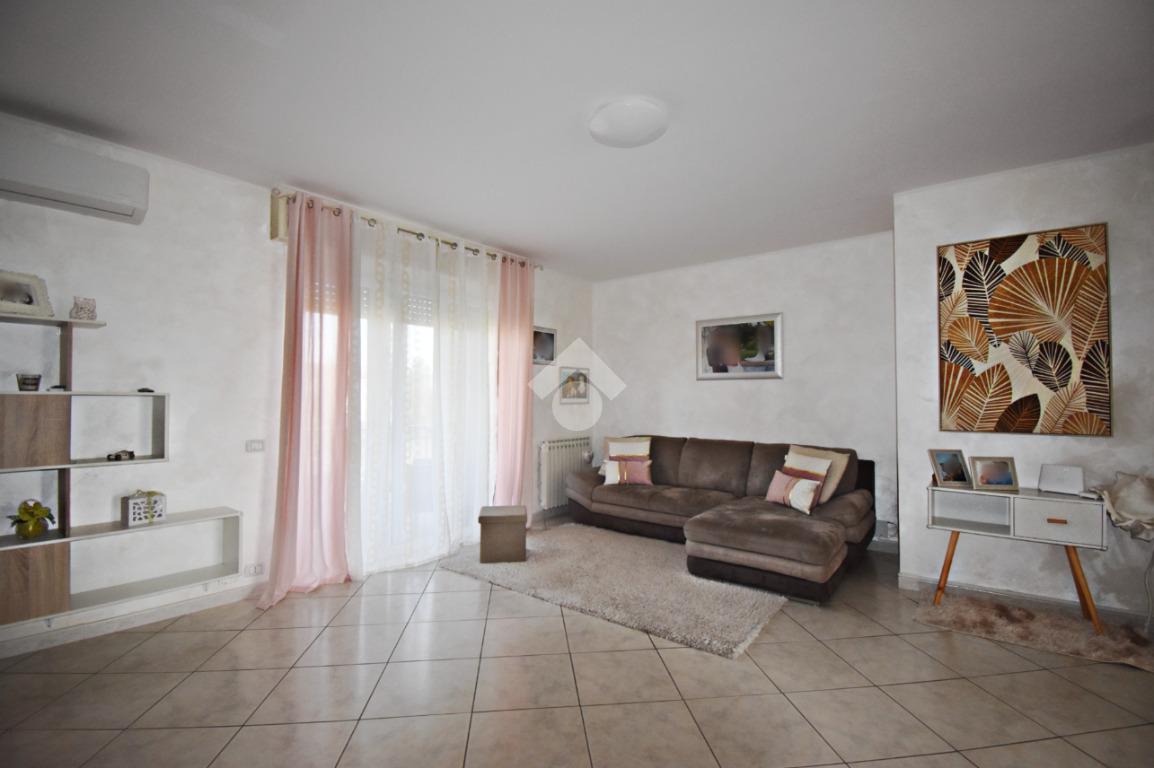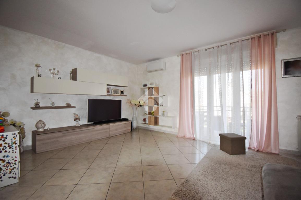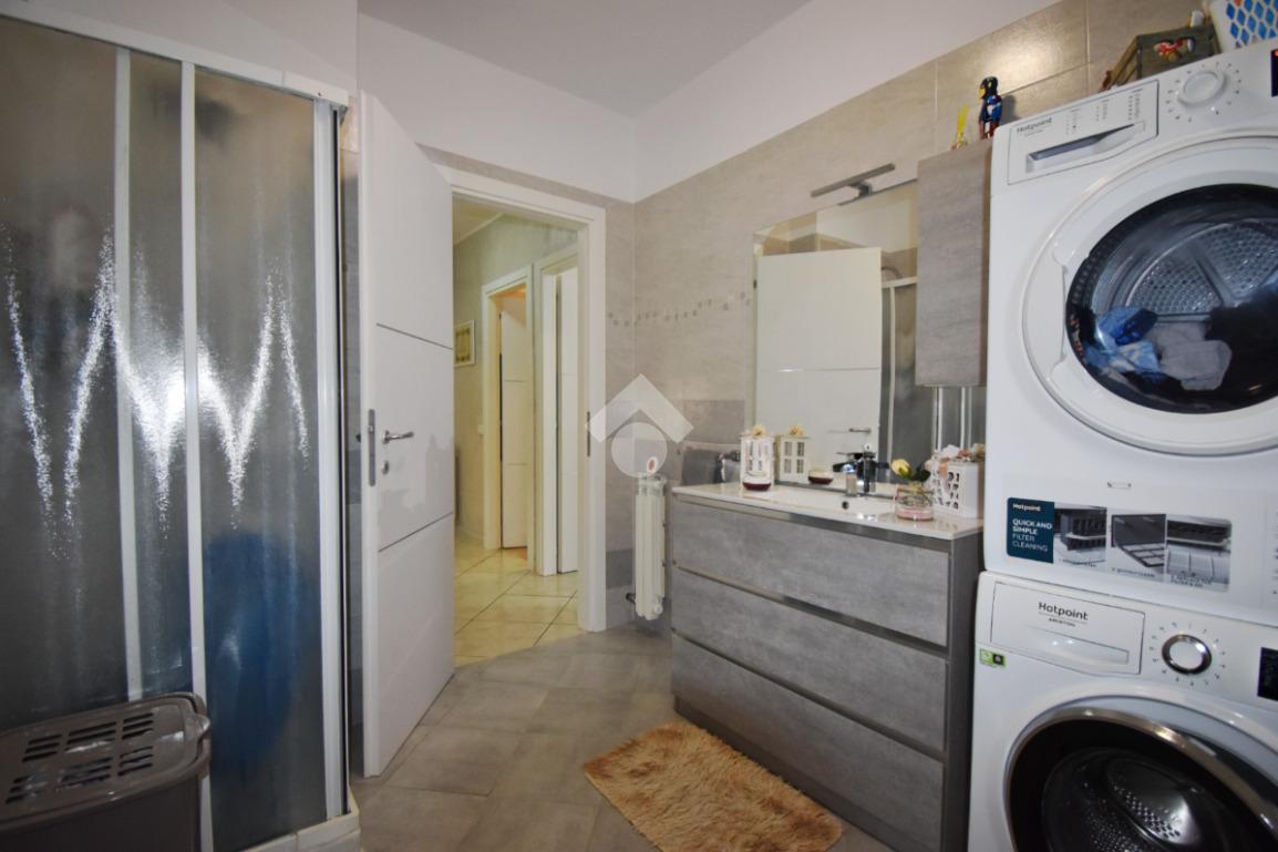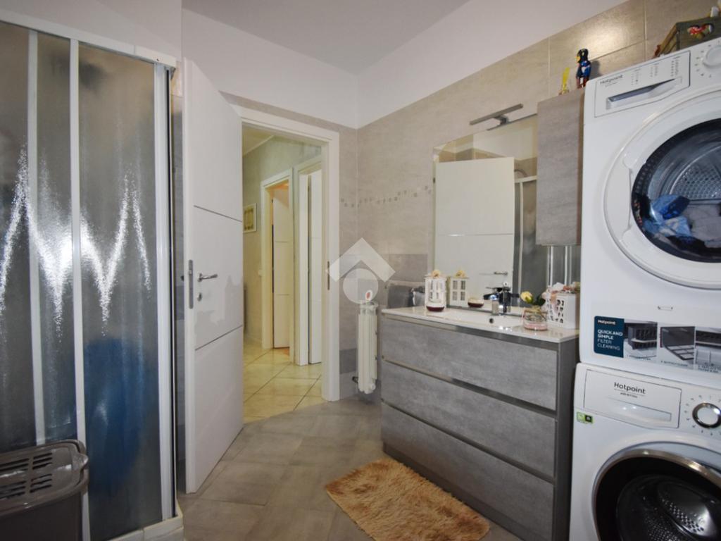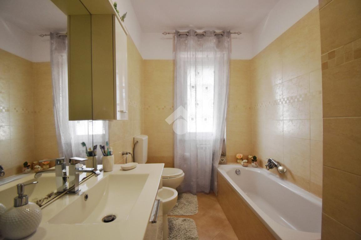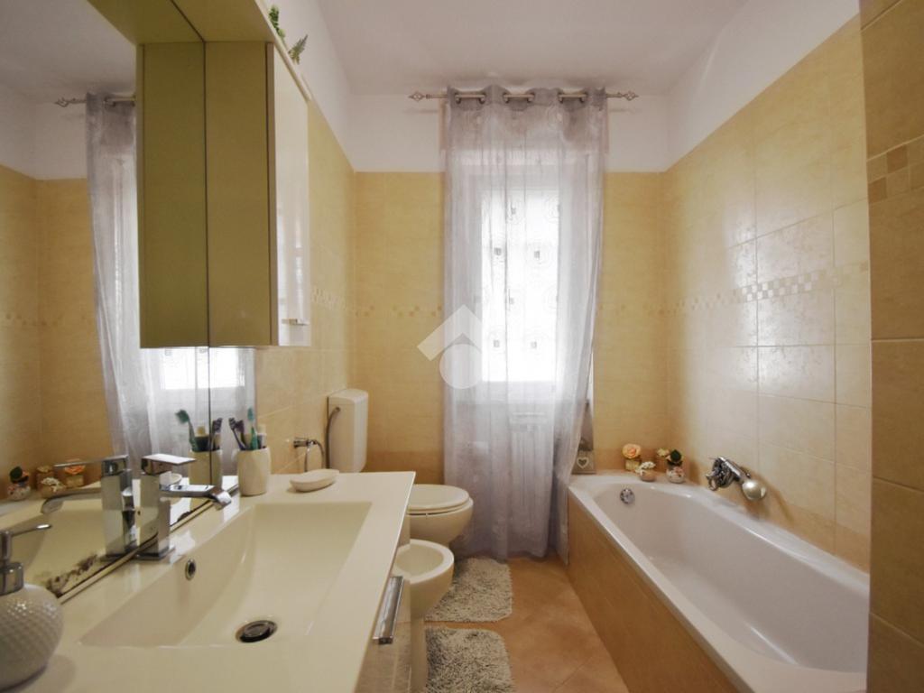 L'ingresso si apre sull'ampio soggiorno con terrazzino esterno, mentre la cucina è abitabile con piano cottura lineare e secondo balcone. Il disimpegno separa la zona notte dove sono presenti le due camere da letto, di cui una matrimoniale e una doppia. Due bagni finestrati dotati uno di vasca e uno di doccia.